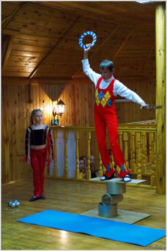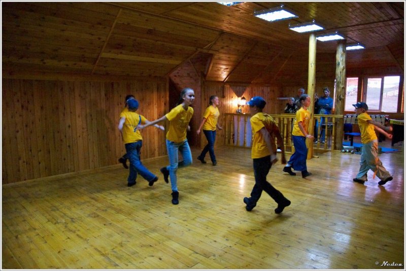 Позже на турбазу приехала большая группа разновозрастных детей. Они участвовали в благотворительной программе по спасению экологии на Байкале - показывали танцевальные и акробатические номера.
