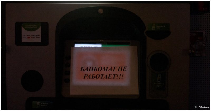 Хорошо, что у мужа была с собой еще карта другого банка. Нужный банкомат стоял напротив и... работал!