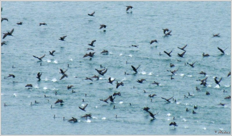 Потом птицы стали бросаться стрелами вниз, в воду. Оказалось, что мы стали свидетелями охоты бакланов на рыбу - чудесное зрелище!