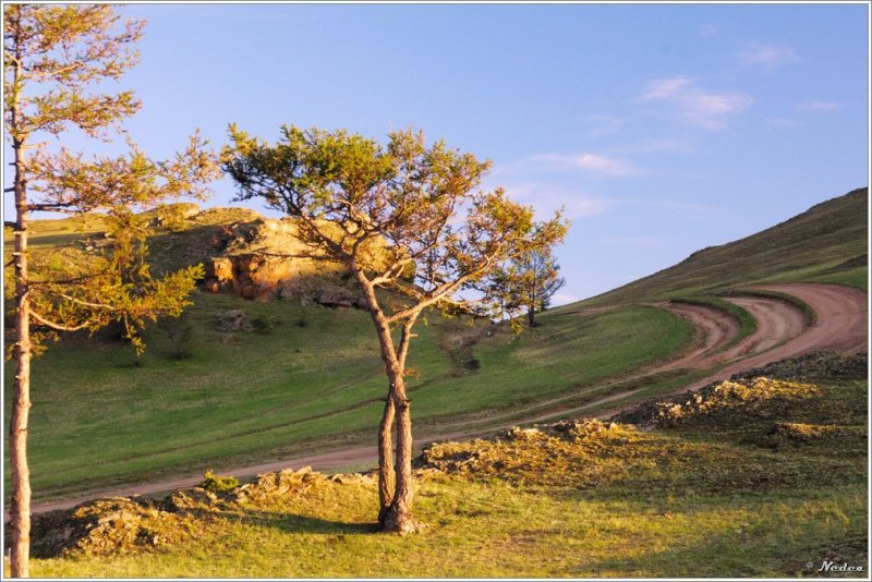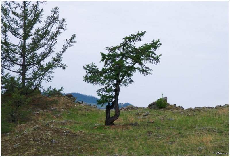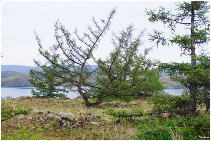 Основные деревья - лиственницы - причудливых форм, изогнувшиеся, примостившиеся на камнях.