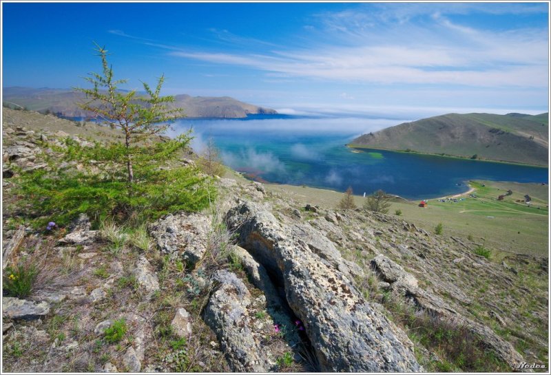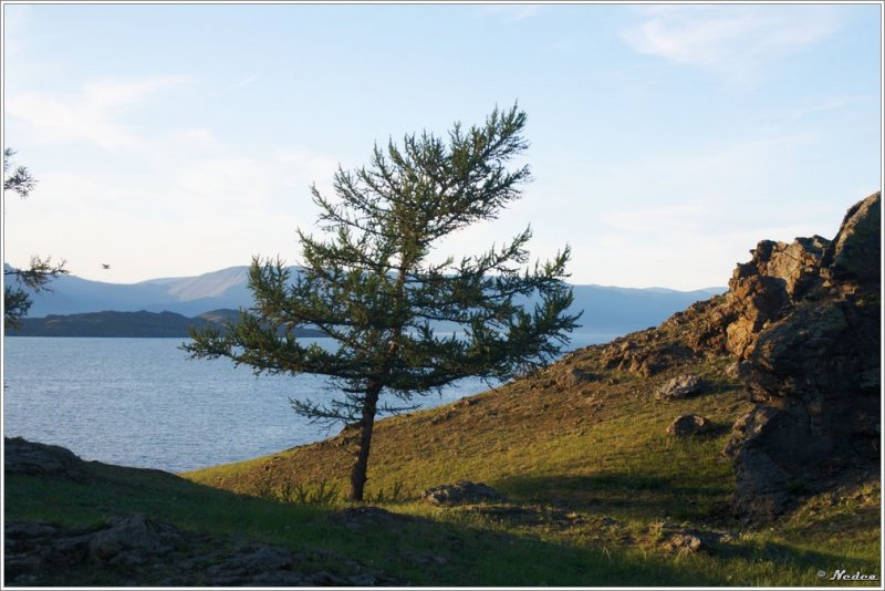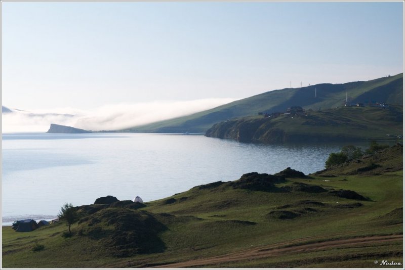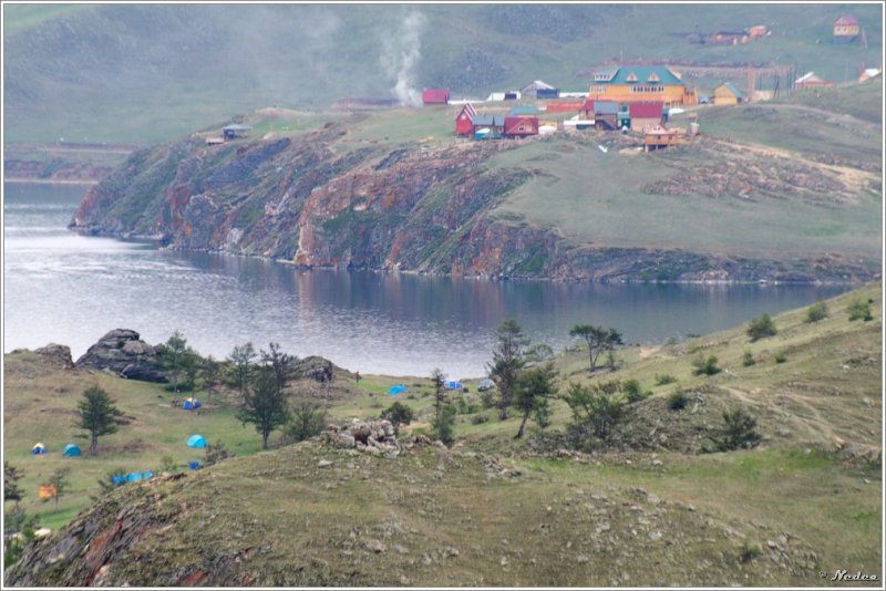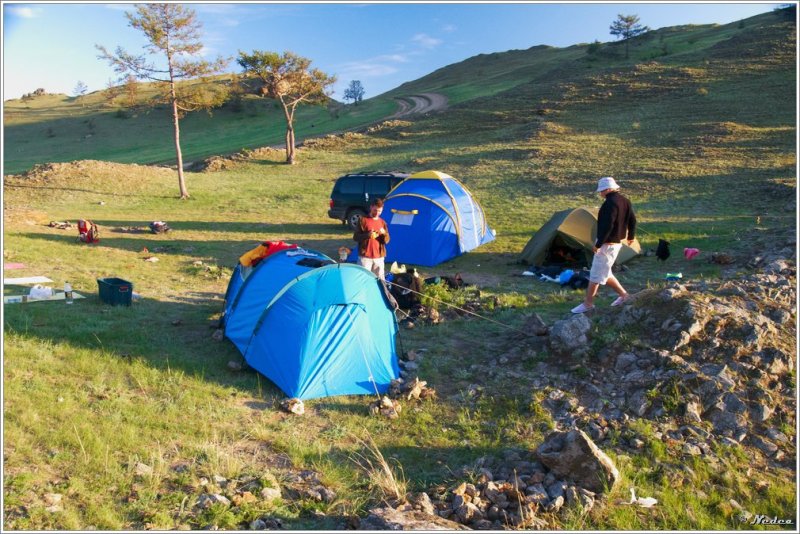 Первую неделю провели на Малом Море – так называют узкую часть Байкала между о.Ольхон и материком. Доехали на машине иркутского друга до поселка Сахюрта (другое название поселка – МРС, Маломорская рыболовецкая станция). Отъехали немного севернее поселка и встали на пригорочке, едва ли не единственном незанятом пятачке. В том районе много баз отдыха и "диких" отдыхающих. Судя по количеству машин сложилось впечатление, что весь Иркутск приехал отдыхать на Малое Море. К сожалению, большое количество машин и людей не может не отразиться негативно на природе – всё исполосовано машинами, мусора хватает. Отдыхающие стараются кучковать мусор, но ветра в том районе сильные, всё разлетается.