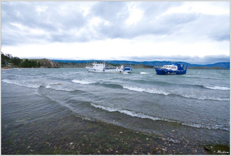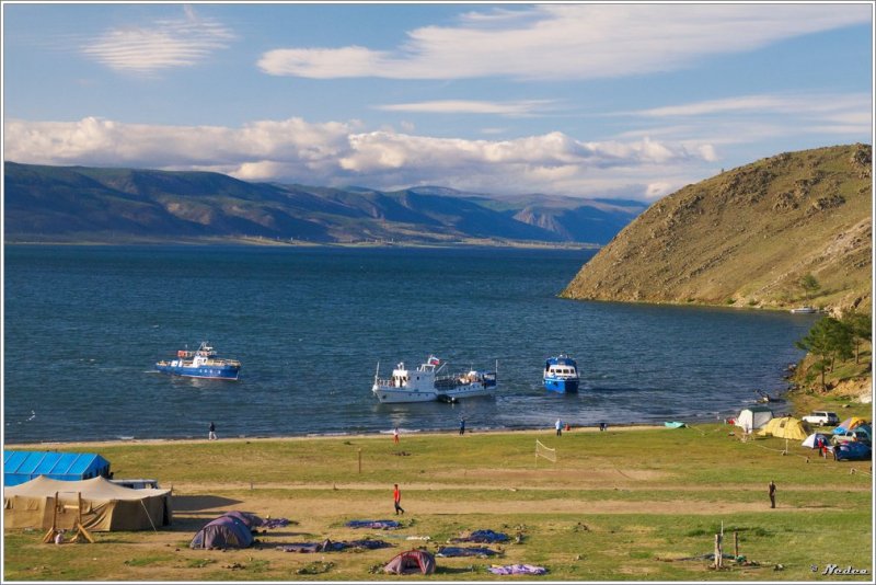 Прожили на Малом Море дней шесть. Дальше нужно было как-то добраться до Листвянки, чтобы пойти в пешую часть похода. В интернете нашли расписание, из которого следовало, что в среду и субботу на Ольхон прибывает теплоход. Билетов у нас не было, как не было и уверенности, что кораблик зайдет на Ольхон.