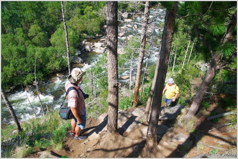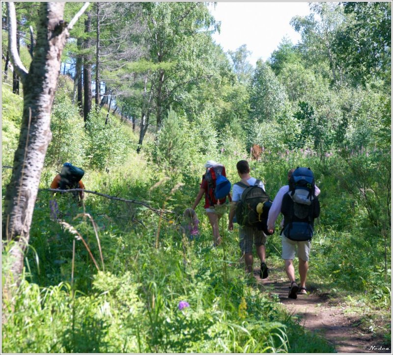 Сначала тропа была почти без подъема, едва заметно набирая высоту. После того, как подошли к реке, начался резкий подъем. Таких подъемов по крутым склонам было несколько. Не хотела бы я там идти с тяжелым рюкзаком