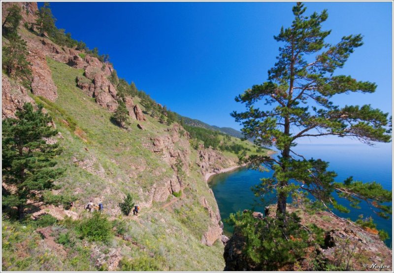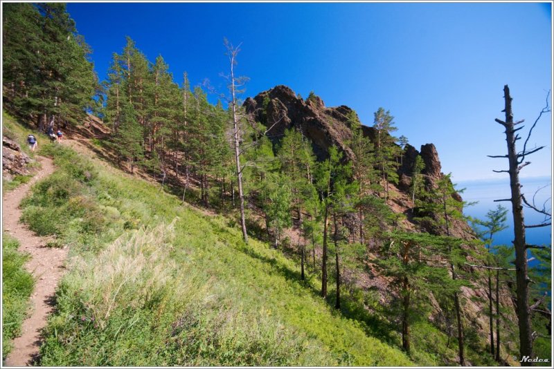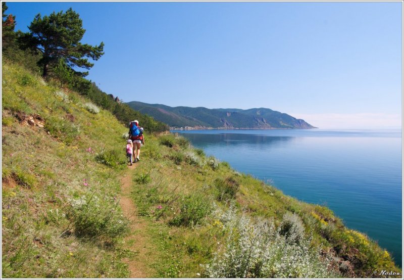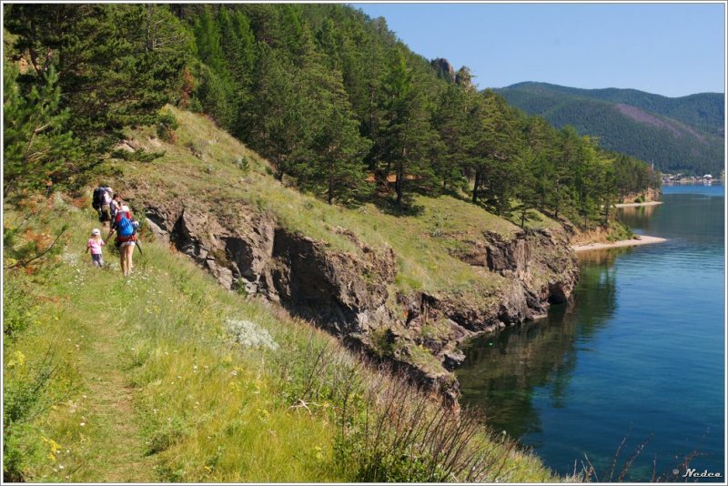 Советую посетить Большую Байкальскую Тропу Этот маршрут не требует каких-либо специальных навыков. И с детками там хорошо. Только стоит учесть, что часто тропа идет по крутым высоким склонам. Шаг в сторону недопустим. Потому деток лучше держать за руку.