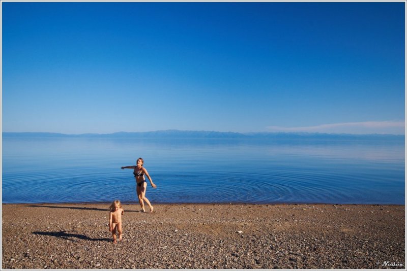 Про купание. За две недели у Байкала меня хватило только на три резких забега и последующих быстрых бегств из ледяной воды. Один наш друг показывал чудеса выдержки (минут на 5 целых), но и у него ноги сводило. Были в разгар лета - конец июля/начало августа.