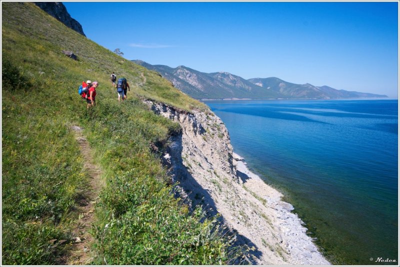 Прошли 60 км Большой Байкальской Тропы от Листвянки до Большого Голоустного. Очень понравился маршрут - достаточно легкий и очень красивый. На удивление там очень мало туристов. Соответственно и мусора нет, и прочих ужасов цивилизации. Но, как я поняла из других интернет-отчетов, в выходные там довольно оживленно. Нам повезло, шли в будние дни. Встретили на тропе молодежь – волонтеров, которые облагораживали тропу, в составе группы были и иностранцы. С 2003г существует межрегиональная некоммерческая общественная организация, которая занимается созданием тропы вокруг Байкала, вот их сайт: