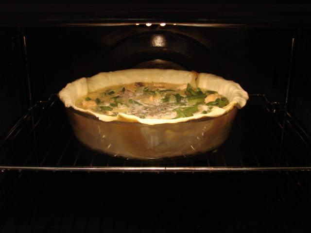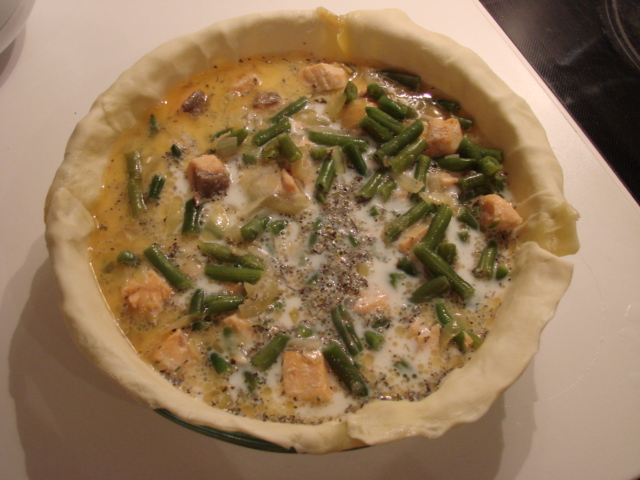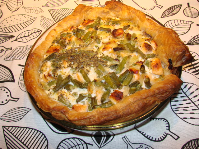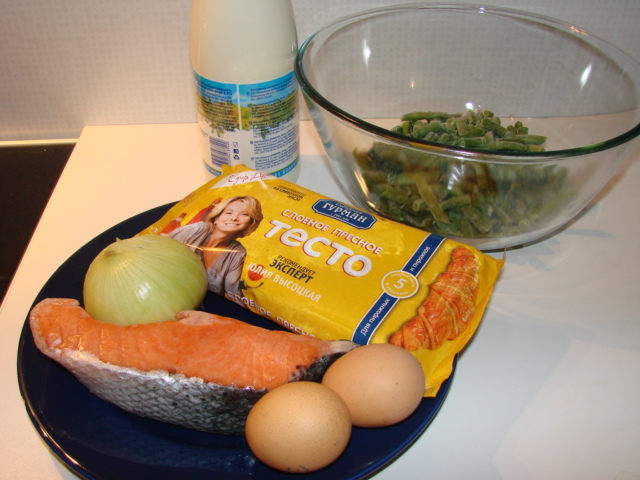 Поделюсь своим рецептом пирога из слоеного теста, семги и стручковой фасоли