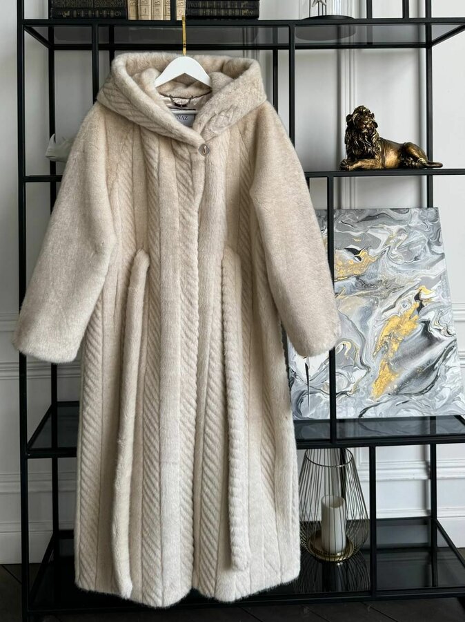 4. Норка цвет нежная пудра, мех импорт, суперское качество! плотный густой подшерсток, мягчайшие шкурки, мех струится, в интерент-магазинах такие шубки идут под лейблом "блекнафа", длина 100 см, английский воротник.