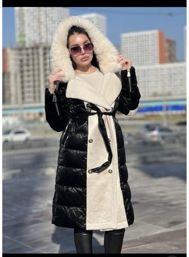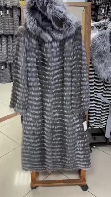 Капюшон полностью чернобурка, свежайшая, с серебристым отливом.