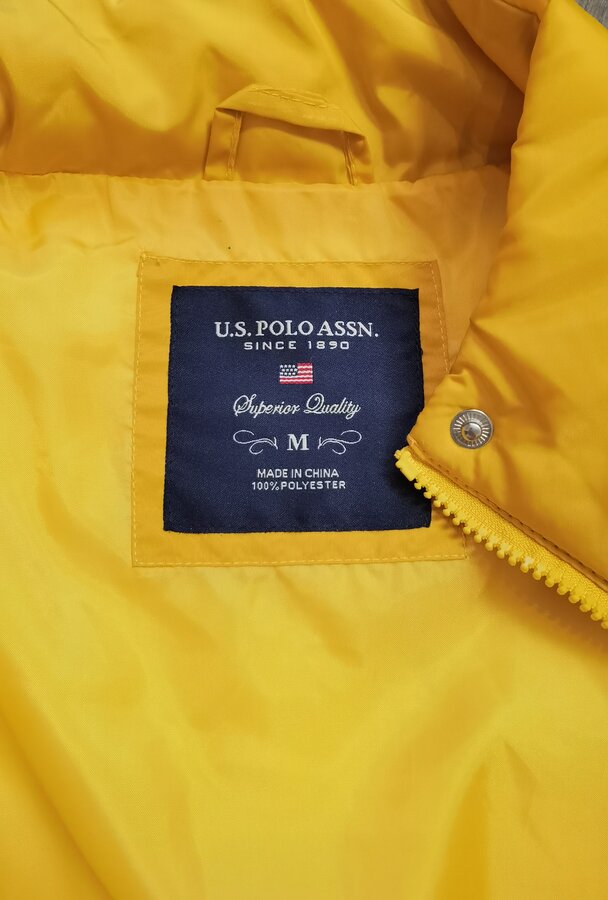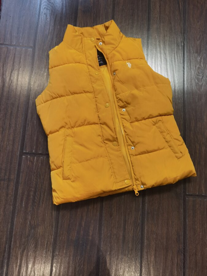 14. Жилетка знаменитой фирмы polo ASSN, оригинал, одета пару раз, без дефектов, маркировка М, цвет ярко жёлтый.