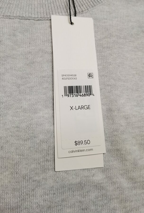 11. НОВЫЙ мужской джемпер Calvin Klein, оригинал 100%, хлопок 100%, маркировка XL, цвет светло-серый.