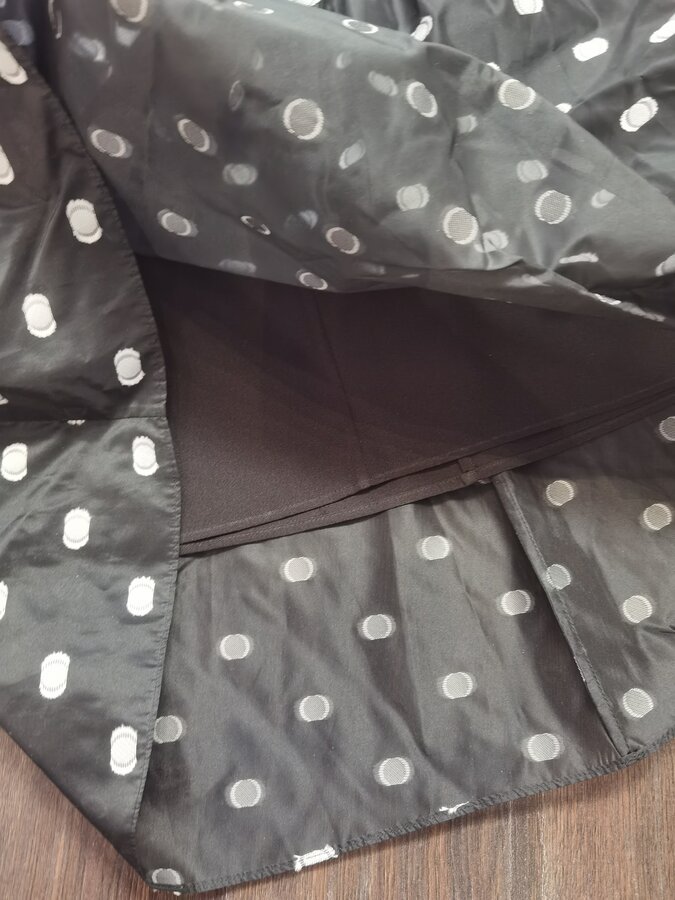15. Итальянская юбка, одета 1 раз, не прижилась по стилю, состояние новой вещи, на подкладе, горох в виде вырезки из ткани. Размер 42-44.