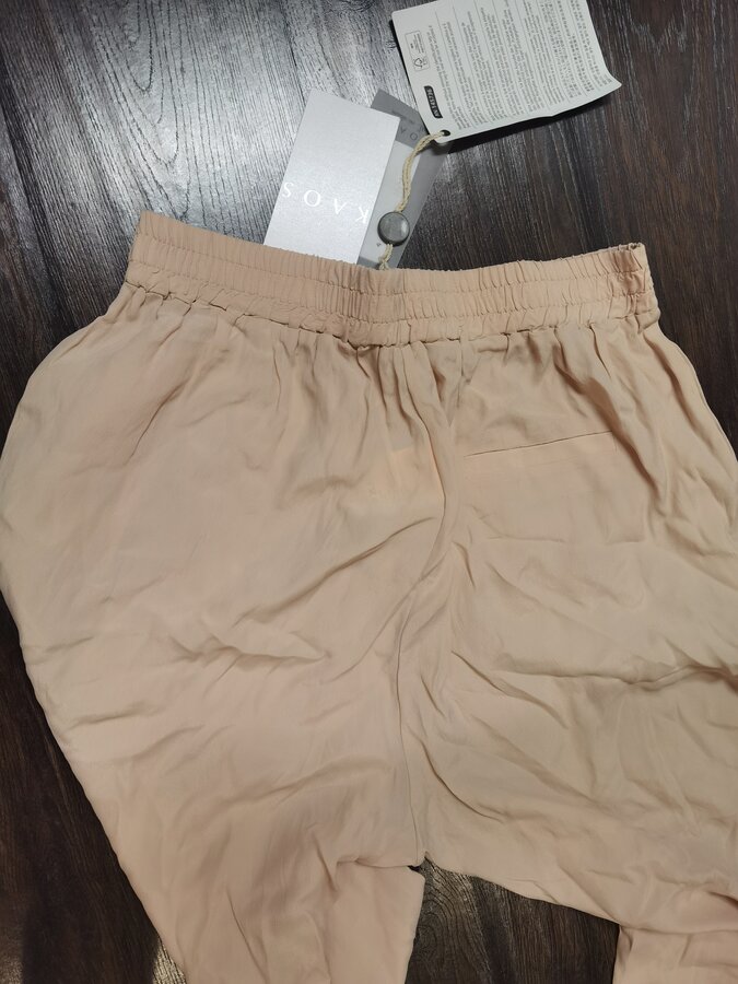 10. Новые женские брючки на лето, легкие, воздушные, пояс на резиночке, по низу штанины манжетик, спереди кармашки, сзади декоративный кормашик. Реальный цвет бежево-персиковый. Маркировка S