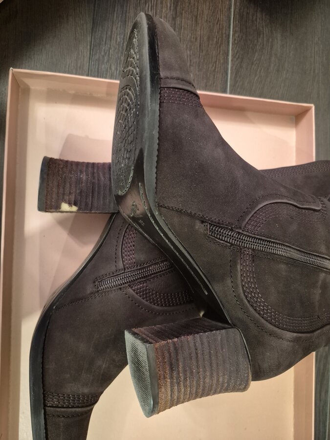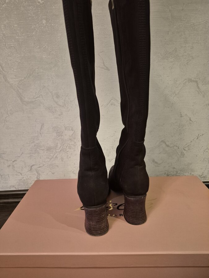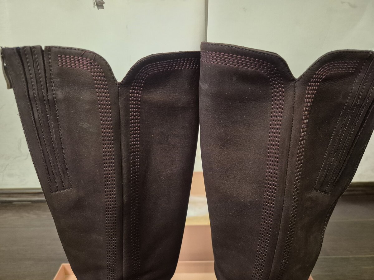 3.Изумительные д/с замшевые сапожки Renzoni за 3200 3000 рублей. 40 маркировка (идут в размер), очень мягкие, как чулки, каблук высотой 6,5 см, состояние идеальных, одевались только по праздникам. Как любой ворсовый материал, от освещения хамелеонит.