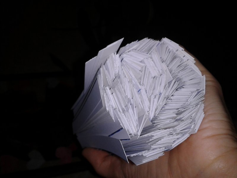 Ой, девочки, это муж сегодня мне работу на дом привез. Надо было с 4 сторон обрезать 130 обложек для дисков DVD. Вот эти обрезки и остались. Я их выровняла, как могла. Получилась вот такая пачка. Муж увидел мои старания и сразу понял, для чего.
