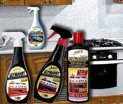 Да, именно о нём, моющие тоже больше для успокоения души помогали...Шуманит-это химия для кухни, продаётся в отделах бытовой химии, бутыль чёрный с распылителем, они по-моему разной направленности есть, этот для удаления пригоревших жиров, я его для стеклокерамической плиты покупала, но вот там он меня не впечатлил.