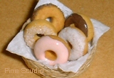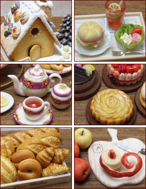 Простые же типа бубликов, батонов и пирогов с "ягодной " начинкой делала из солёного теста- очень натурально выглядит, запекать не надо, детали маленькие и на батарее высохнут прекрасно) Красила бублики и хлеб раствором кофе. Глазурь- акрил. Покрывала лаком акриловым, иногда и для ногтей хорошо идет.